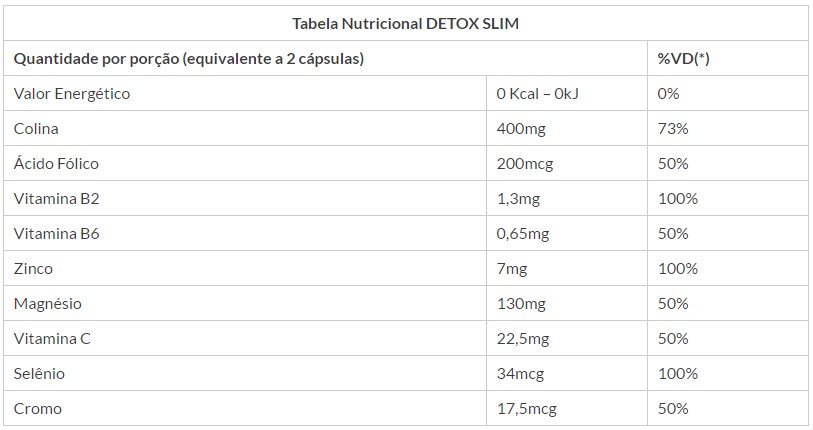 (Figura 02: Tabela Nutricional. FONTE: DETOXSLIM, 2017)