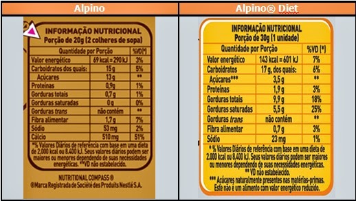 diabéticas também se encontram maiores no produto destinado a estes.